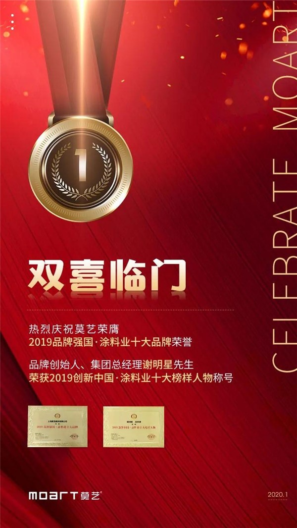 热烈庆贺莫艺集团荣膺“2019品牌强国·涂料业十大品牌”